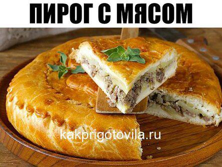 Пирог с мясом. Съедается моментально даже не остыв. Ингредиенты: Тесто — 3 яйца — 1 стакан муки — 1/2 стакана сметаны или кефира — 1/2 стакана майонеза — 1/2 ч.