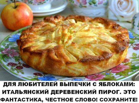 ДЛЯ ЛЮБИТЕЛЕЙ ВЫПЕЧКИ С ЯБЛОКАМИ: ИТАЛЬЯНСКИЙ ДЕРЕВЕНСКИЙ ПИРОГ. ИТАЛЬЯНСКИЙ ДЕРЕВЕНСКИЙ ПИРОГ Ингредиенты: Мука пшеничная—180 г Яблоко—4 шт Желток яичный—2