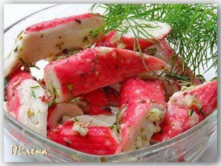Оригинальная закуска — Маринованные крабовые палочки.. Очень популярны на праздничном столе Ингредиенты: Крабовые палочки – 200 гр Чеснок – 2 зубчика Лимонный