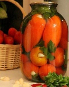 Помидоры «Язык проглотишь». Вкуснейший рецепт! Способ приготовления: У помидоров вырезаем плодоножку и вставляем по зубчику чеснока. Укладываем их в банку, прослаивая веточками сельдерея, петрушки, дольками болгарского перца. Добавляем 0,5 среднего стручка…