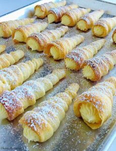 Трубочки с кремом. Порядком вкуснее, чем в магазине!. Тесто: 500 г муки 250 г сливочного масла 250 г сметаны щепотка соли Крем: 6 яичных желтков 1 стакан сахара 2 стакана молока 4 ст.л. кукурузного крахмала 250 г мягкого сливочного масла ваниль Отдельно:…